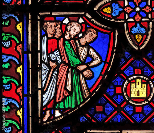 Fototapeta premium Jesus is captured, stained glass window from Saint Germain-l'Auxerrois church...