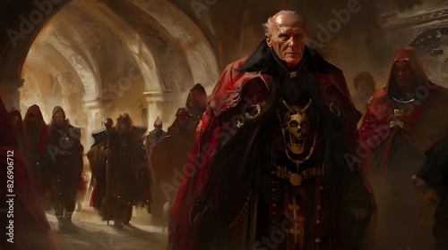 Naklejka premium Jesus on the cross in a church with stained glass windows, surrounded by...