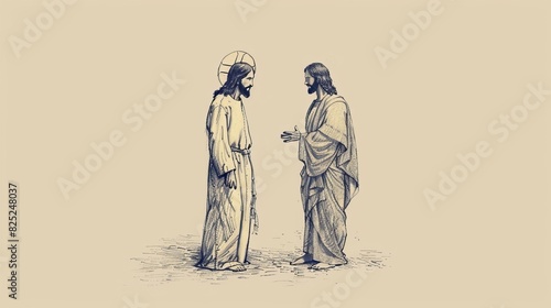Obraz premium Jesus Standing Beside a Person Facing a Difficult Decision, Offering Guidance, Biblical Illustration of Support and Wisdom