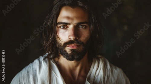 © Daniel, Fototapeta premium Jesus Standing with Compassion and Serenity: A Radiant Presence of Faith"