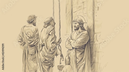 © T Studio, Fototapeta premium Jesus' Unjust Trial and Condemnation, Biblical Illustration of Sacrifice, Perfect for Religious Stock Photos
