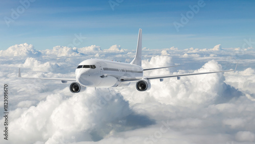 © 용석 주, Fototapeta premium Jet Airplane Flying in the Blue Sky