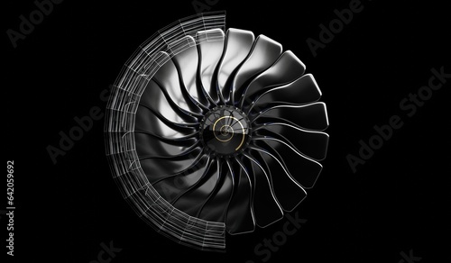 Obraz premium Jet engine on black background - 3D illustration