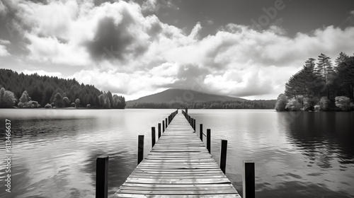 Fototapeta premium Jetty on a lake in black and white wallpaper background