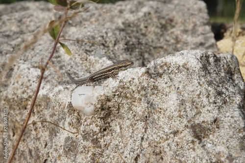 Fototapeta premium jeune lézard des murailles sur rocher - podarcis muralis