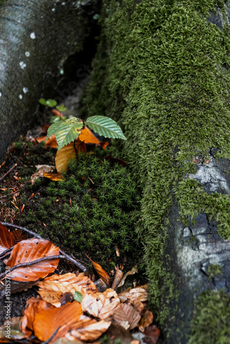 Fototapeta premium Jeune pousse au pied d’un arbre majestueux