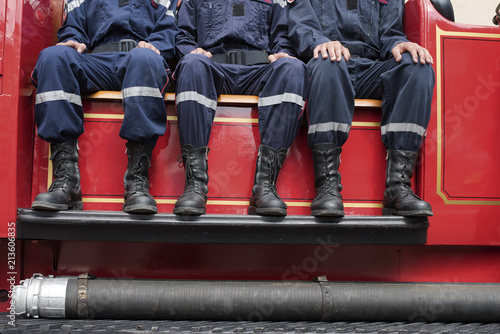 Fototapeta premium jeunes pompiers sur un camion de collection français
