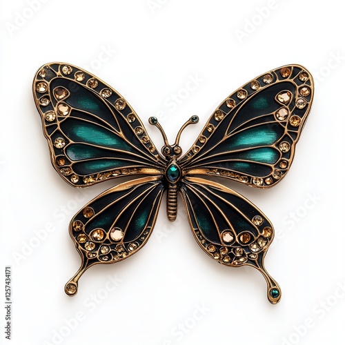 © Alfariha, Fototapeta premium Jeweled butterfly brooch, white background, studio shot, craft