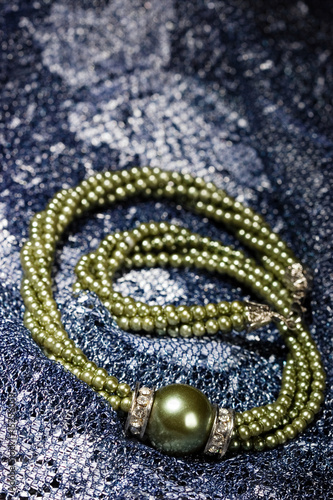 © Andreea Ardelean, Fototapeta premium Jewelry on a blue scarf