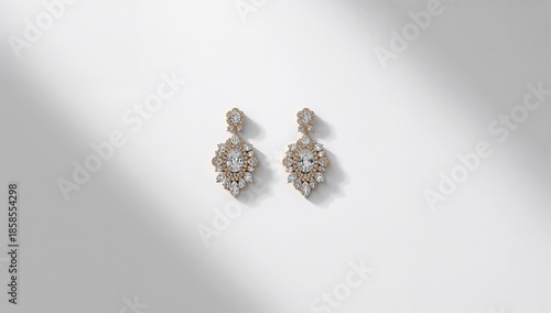 © CryptoCanvas, Fototapeta premium Jewelry presentation featuring earrings with stones on a white background, ideal for product catalogs