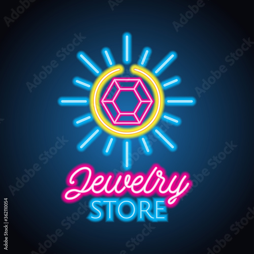 Fototapeta premium jewelry store neon sign for jewelry business plank. vector illustration