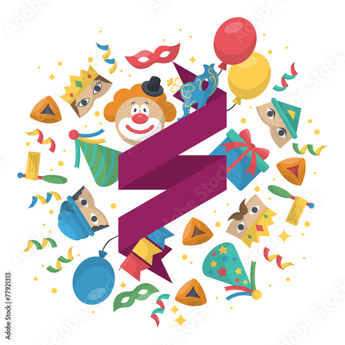 © girafchik, Naklejka premium Jewish holiday Purim banner design with flat icons and symbols