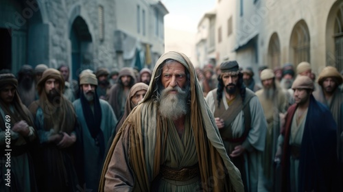Naklejka premium Jewish men in the street. Old testament. Biblical Scene