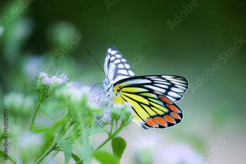 Fototapeta premium Jezebel butterfly resting on the flower plants