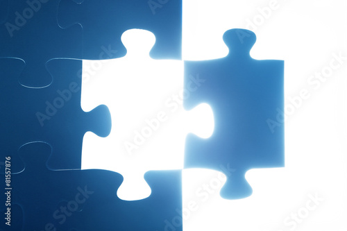© Photocreo Bednarek, Obraz premium Jigsaw puzzle piece missing. Light glowing. Solution