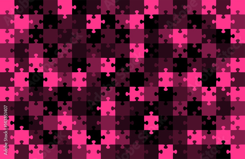 © paitoonpati, Fototapeta premium Jigsaw puzzle pink color illustration pattern isolated on black background, vector eps10