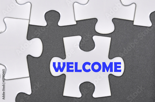 Fototapeta premium jigsaw puzzle written word welcome