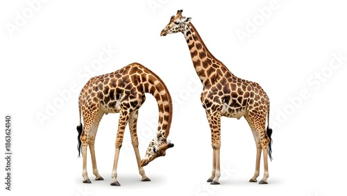 © youns, Obraz premium Jirafa con cabeza larga mira al revés sobre blanco