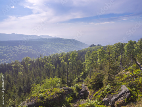 Fototapeta premium Jizera Mountains (jizerske hory) panorama, view with lush green spruce forest...