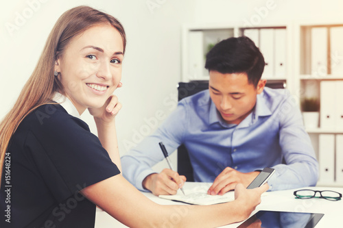 Obraz premium Job interview with a woman in office