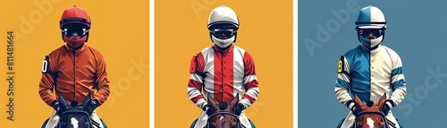 © Puttharak, Obraz premium Jockey uniforms flat design front view sports theme cartoon drawing Splitcomplementary color scheme