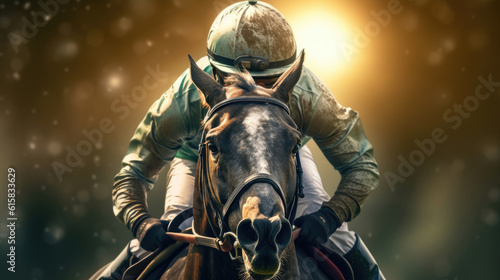 Fototapeta premium Jockeys riding horses in a race