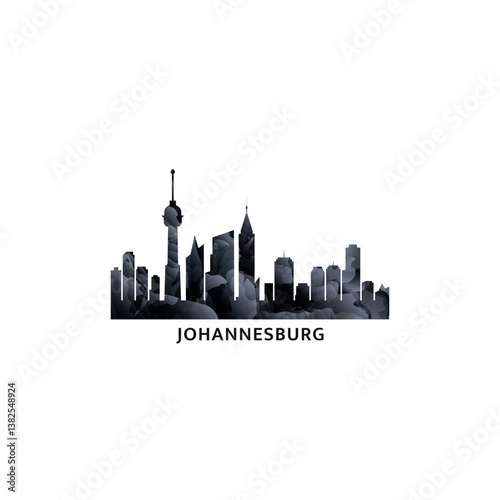© Anastasiia, Fototapeta premium Johannesburg panorama, vector badge, skyline logo and icon. South Africa city horizon logotype with landmarks and building silhouettes. Isolated foggy abstract gradient graphic