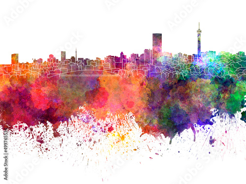 Fototapeta premium Johannesburg skyline in watercolor on white background