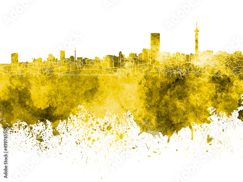 © Paulrommer, Fototapeta premium Johannesburg skyline in yellow watercolor on white background