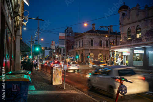 © Phoebe, Fototapeta premium johnston street in melbourne at night on with night life in australia in summer