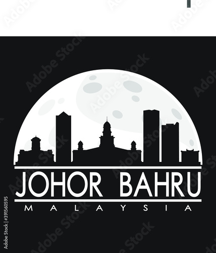 Fototapeta premium Johor Bahru Malaysia Full Moon Night Skyline Silhouette Design City Vector Art.