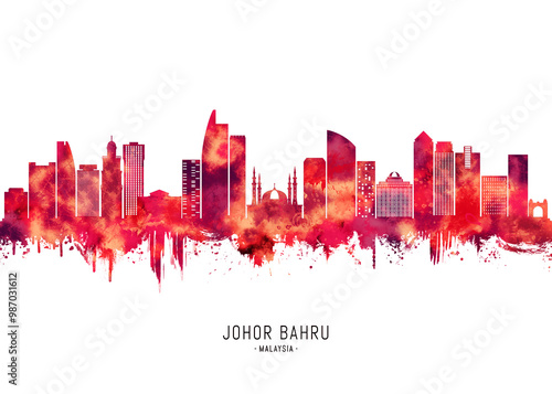 Fototapeta premium Johor Bahru Malaysia Skyline Red
