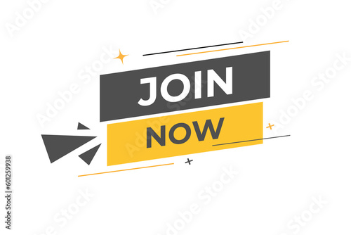© Sultana Design, Naklejka premium Join Now Button. Speech Bubble, Banner Label Join Now
