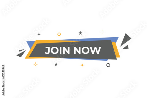 Naklejka premium Join Now Button. Speech Bubble, Banner Label Join Now