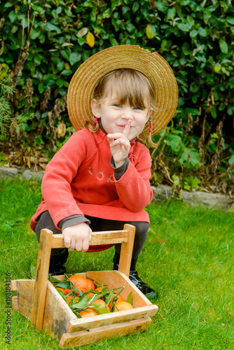 © Image'in, Obraz premium jolie fillette et son panier de clémentines