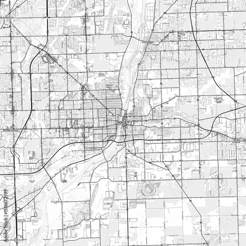 © Knut Hebstreit, Fototapeta premium Joliet Area Map with Labels and Neighborhoods - One color, minimalistic design