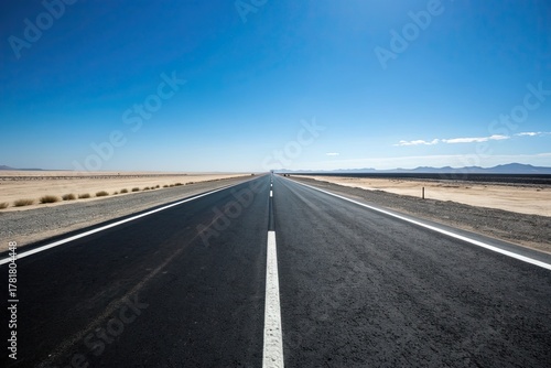 Fototapeta premium Journey on a Straight Road, Location: Desert Landscape, Content Type:...