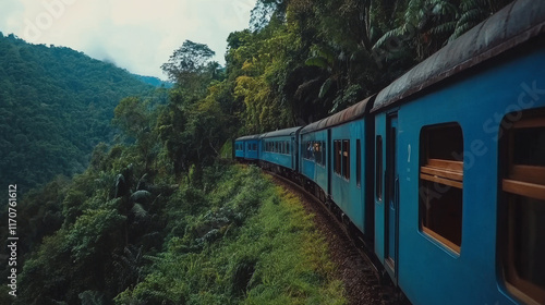 © Almaz, Obraz premium "Journey Through the Wild: Train Tour Across Lush Jungles"