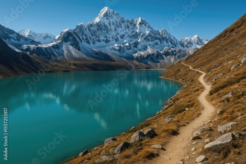 © GenZGraphics, Obraz premium Journey to the High Altitudes: Exploring the Lake and Summit