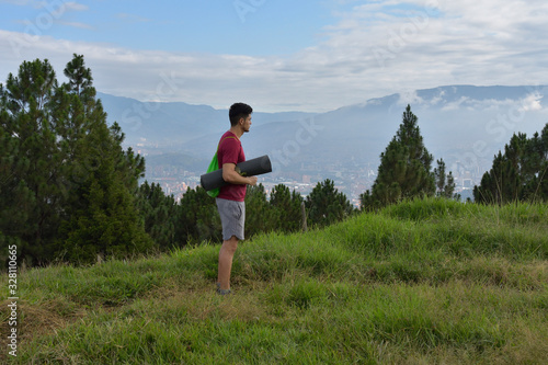 © Noel, Obraz premium Joven latino acampando en una montaña