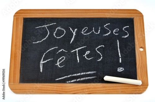 © Richard Villalon, Fototapeta premium Joyeuses fêtes écrit sur une ardoise