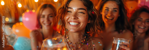 © Flop, Obraz premium Joyful Birthday Celebration with Friends