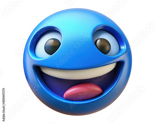 © MSTAFSANA, Fototapeta premium Joyful blue emoji open mouth smiling cartoon face happiness emotion expression good mood contentment