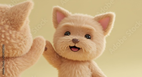 Obraz premium Joyful Cartoon Puppy Giving High Five in Soft Pastel Colors 3D Render...