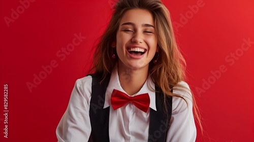Fototapeta premium Joyful Casino Host Young Professional Exuding Happiness in the Gaming Resort Industry