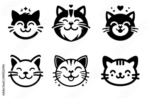 Fototapeta premium Joyful Cat Head Silhouettes: Vector Art Edition