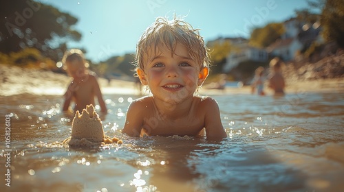 © dongwei, Obraz premium Joyful Child Playing by the Beach Shore