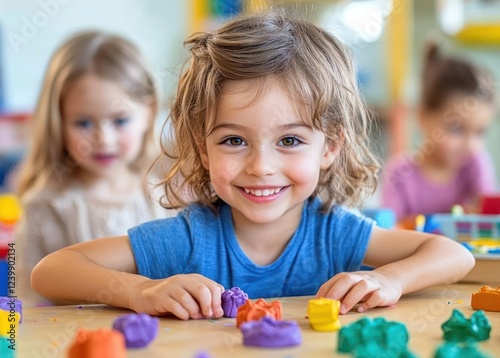 © Milana, Fototapeta premium joyful children creating colorful art with modeling clay in vibrant daycare center