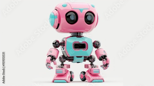 © Sompoch, Naklejka premium Joyful cute aquamarine pink robot.