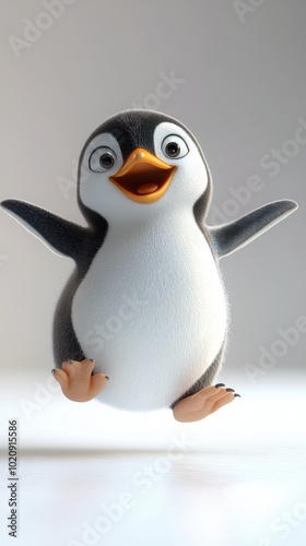 Fototapeta premium Joyful 3D Dancing Penguin on Ice